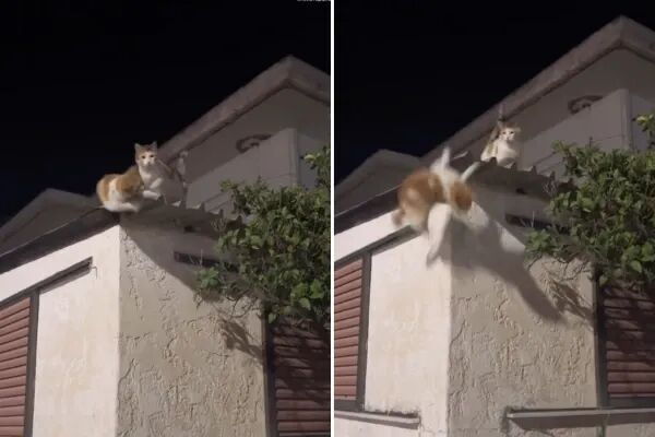 忽然,院子里传来一名小姐姐的呼唤:嘬嘬,站着的猫咪看了一下,但还来不及反应,下一秒做卧着的猫竟辣手催喵毫不留情的将它推下屋顶,小姐姐吓得大喊没事吧,安全着地的猫咪走过小姐姐身旁,给了她一个眼神,仿佛在说:哼,人,这样你满意了吧。