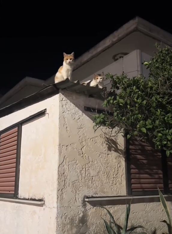 事情是这样的,江苏一名小姐姐日前分享一段有趣的视频,视频中,在月高风清的夜晚,在一处民宅屋顶上,一只猫咪坐卧,另一只猫咪则站着享受着月光浴。