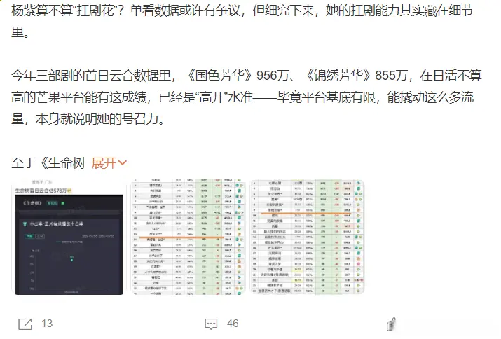 《生命树》和《太平年》正在播出,这两部剧都是当之无愧的“大制作”,让大家没想到的是,翻版《永夜星河》播出后,热度竟超过《生命树》和《太平年》,这样的情况出现,网上竟传出一种声音,杨紫是不扛剧了吗?大家怎么看呢?