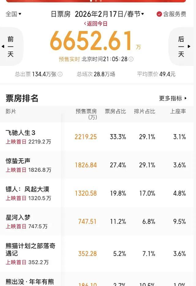 目前,是沈腾韩寒的电影《飞驰人生3》遥遥领先,排在了预售榜的第一名,首日预售成绩超过了2000多万,排片量也是相当高的。