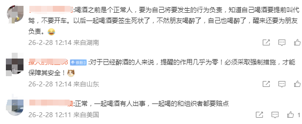 《中华人民共和国民法典》第一千一百六十五条规定:行为人因过错侵害他人民事权益造成损害的,应当承担侵权责任。以下4种情形,劝酒者、同饮者需依法担责,缺一不可。如果饮酒者出事,以下4种情况,劝酒者需承担法律责任:1.强迫性劝酒。如用语言刺激对方,或在对方意识不清、自制力缺失的情况下,仍劝其喝酒;或因劝酒诱发疾病造成了一定后果的均要承担相应的法律责任2.明知饮酒者不能喝酒仍劝其饮酒。如明知对方身体状况,仍劝其饮酒诱发疾病等3.未安全护送醉酒者。如饮酒者已失去或即将失去对自己的控制能力,同饮者没有将其送至安全地方,一旦出现意外,同饮者也要承担一定的法律责任。特别是春节期间,天气寒冷,极易造成醉酒者冻死、冻伤的后果4.酒后驾车未劝阻。酒驾后导致发生车祸等损害的,同饮者如无劝阻则需承担一定的法律责任。新民晚报(xmwb1929)综合大象新闻、红星新闻、库车公安、网友评论等